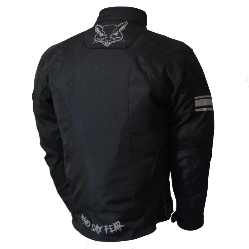 La chaqueta de moto Garafía de cordura está fabricada en un tejido sintético (poliamida) de alta resistencia al rasgado. Utilizamos Cordura 600D (Denier). El Denier es la unidad de medida que se utiliza para medir la masa de una fibra y le da el grosor del hilo y el trenzado del mismo. Todas las prendas de cordura tienen protecciones homolagadas por la CE.